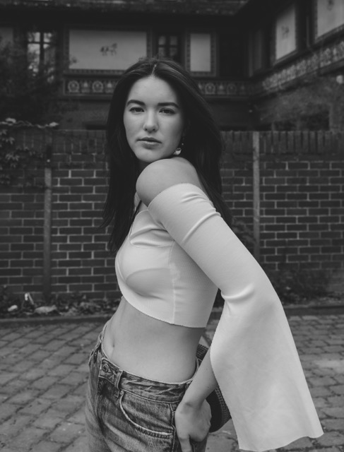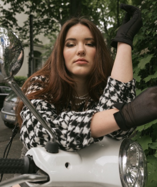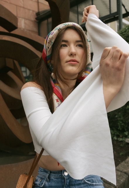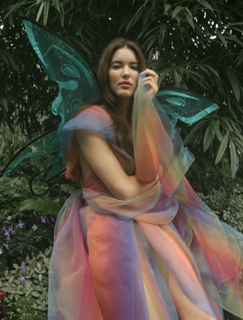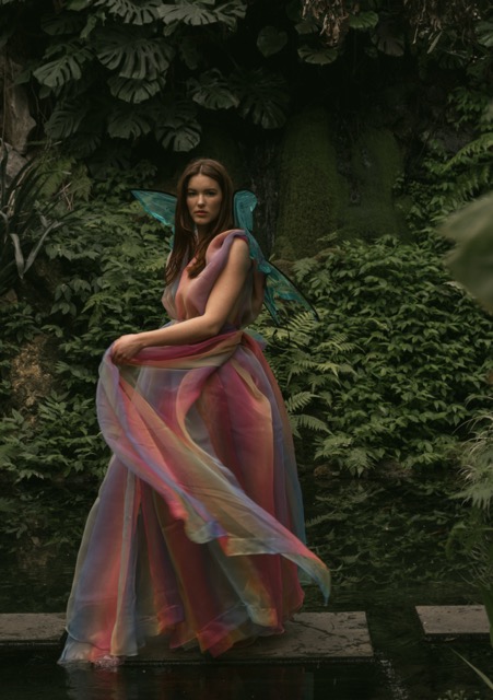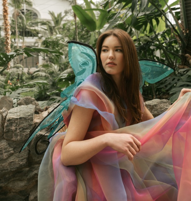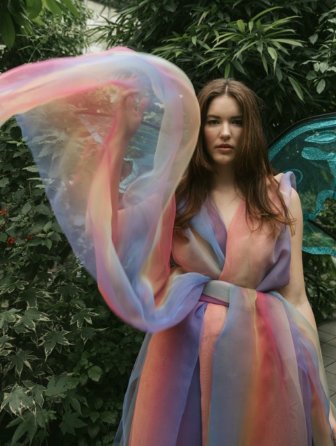 Butterfly in the Palmer Garten, with a dress as dreamy as a rainbow flow.